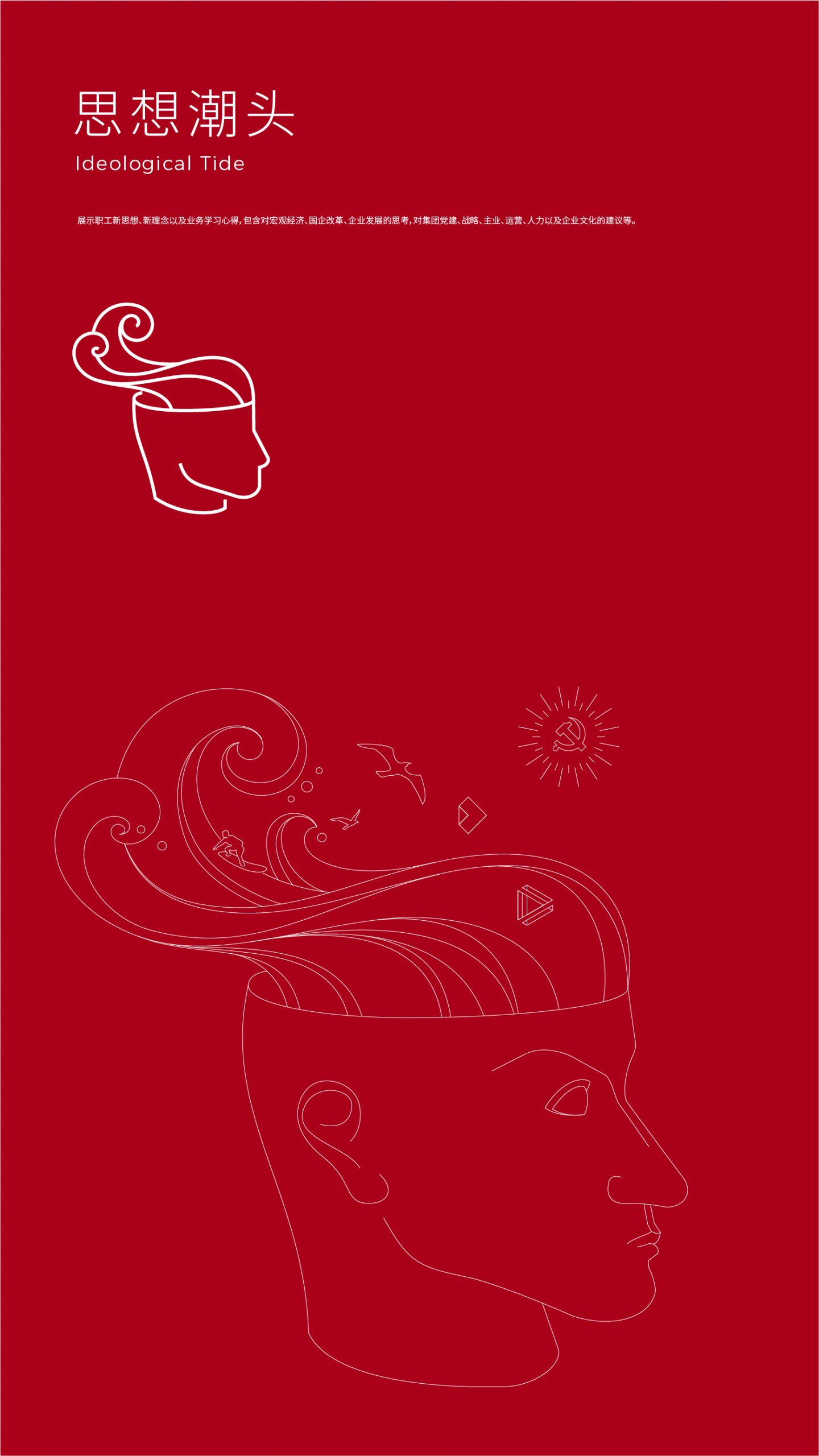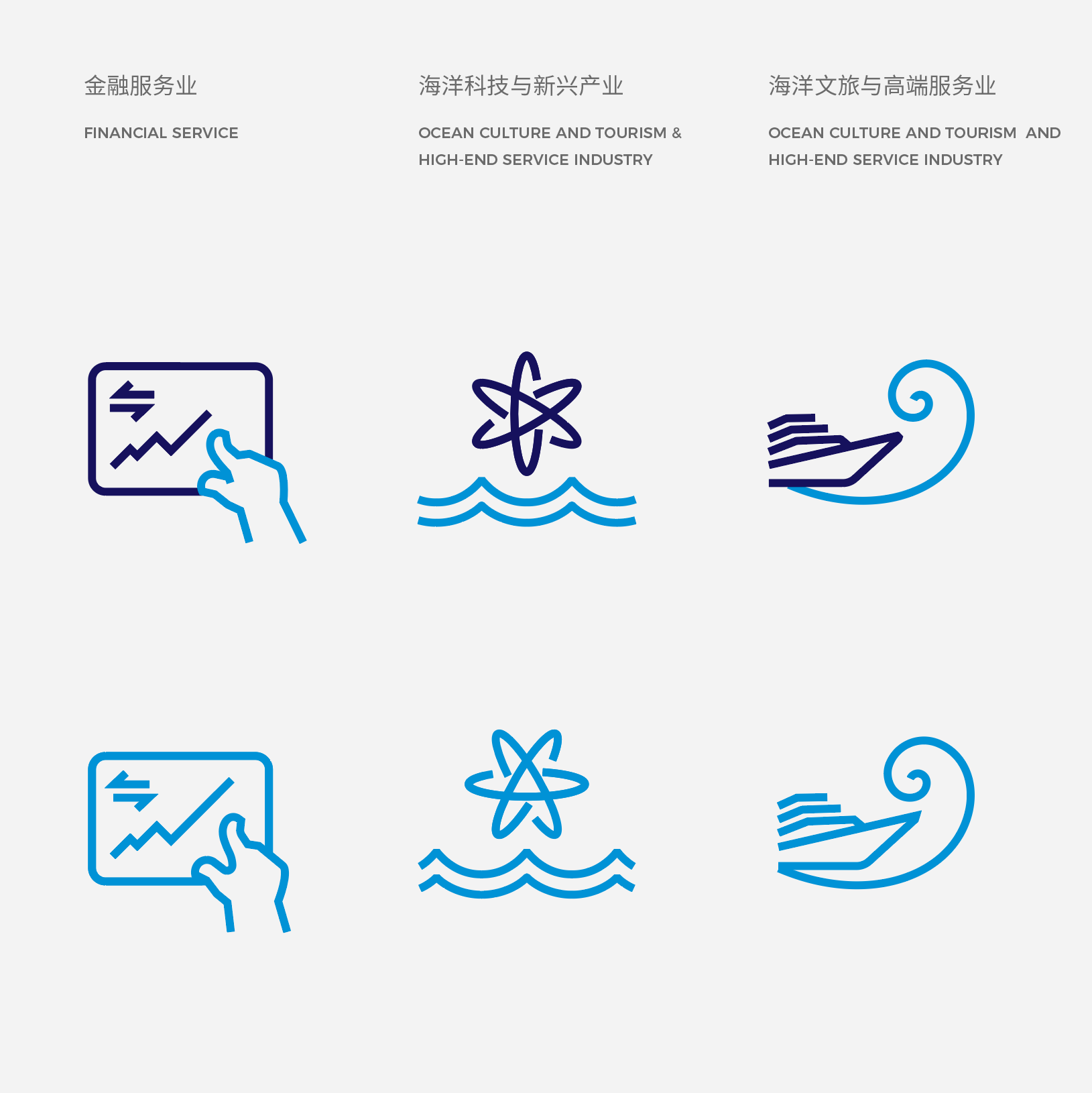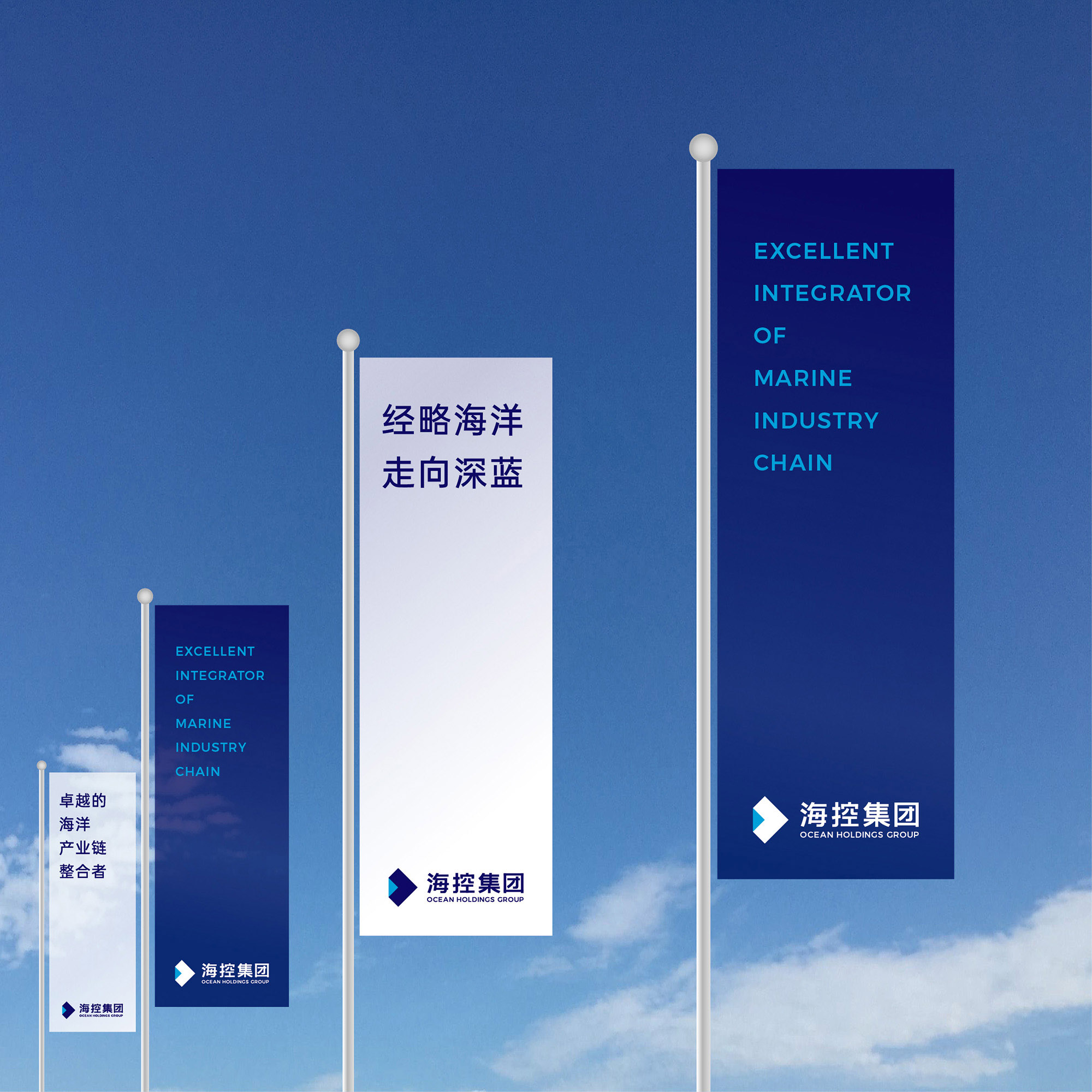 正方形折疊一角,意涵為「海洋的折疊」。折疊形成兩個箭頭,代表陸地和海洋,表達人類對海洋多維度的探索和我國「海陸統籌,走向深藍」的發展戰略。